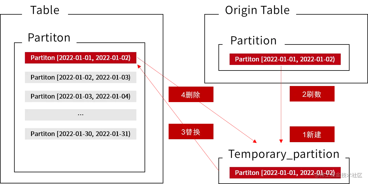 在刷数的时候,对于特定历史分区的刷数操作,可以使用 StarRocks 的临时分区功能实现无感刷数。