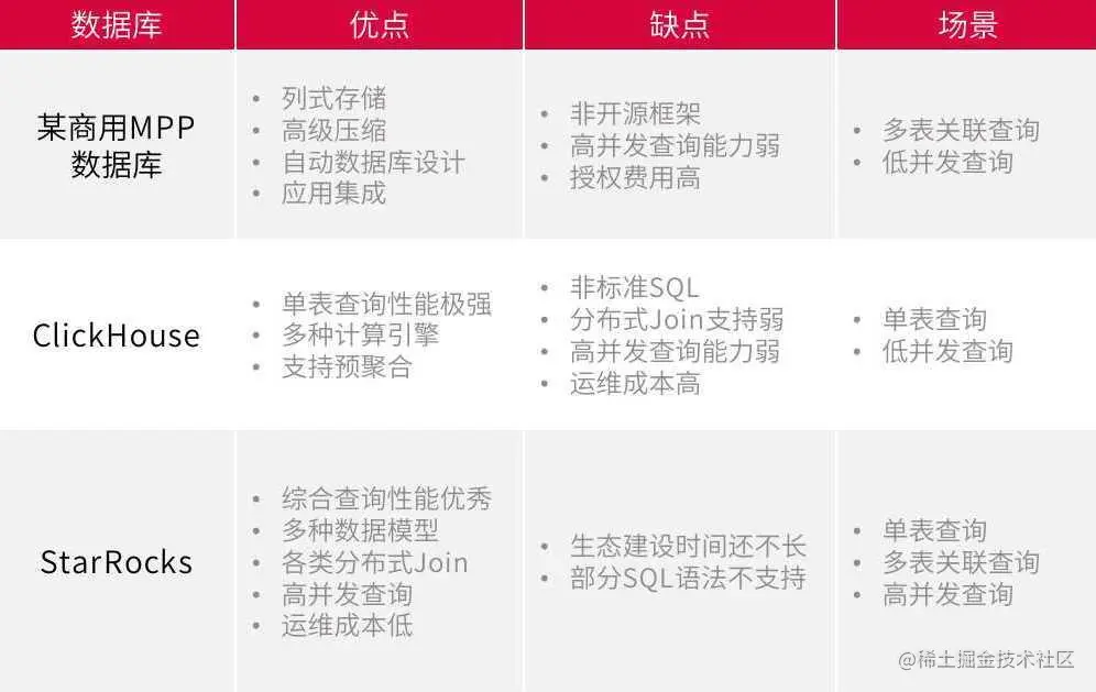 - 能够支持多类型 Join,大表 Join 性能要优秀;