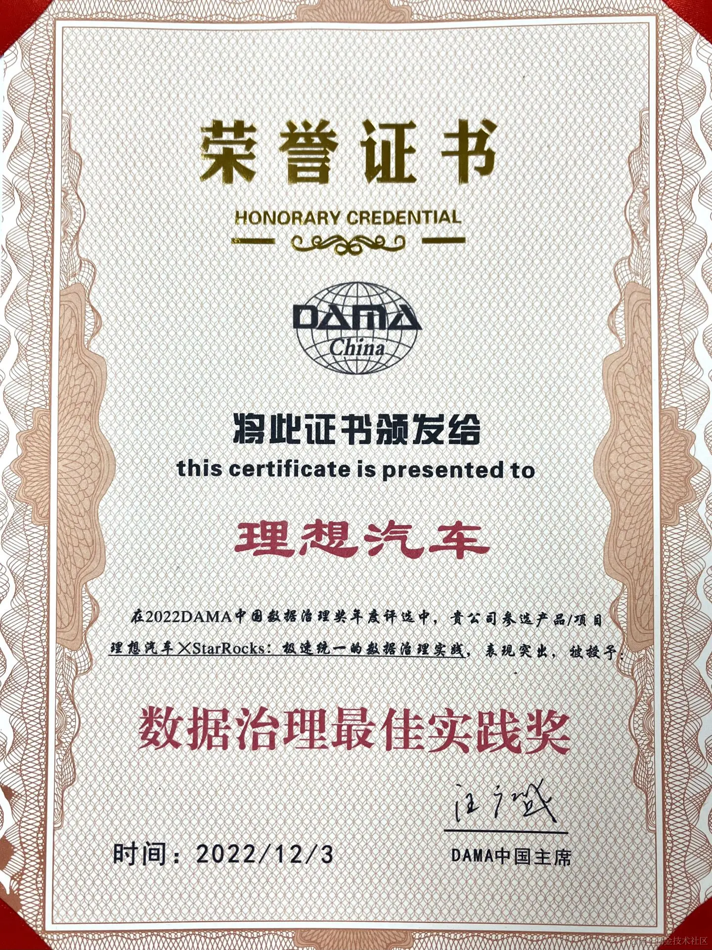 近日,由国际数据管理协会(DAMA)指导的 “2022DAMA 中国数据管理峰会(线上部分)” 圆满落幕。作为大数据的行业风向标,大会面向各领域的数据治理实践设置并发布奖项,“理想汽车 ×StarRocks:极速统一的数据治理实践” 项目凭借创新性的数据平台建设经验荣获数据治理最佳实践奖。