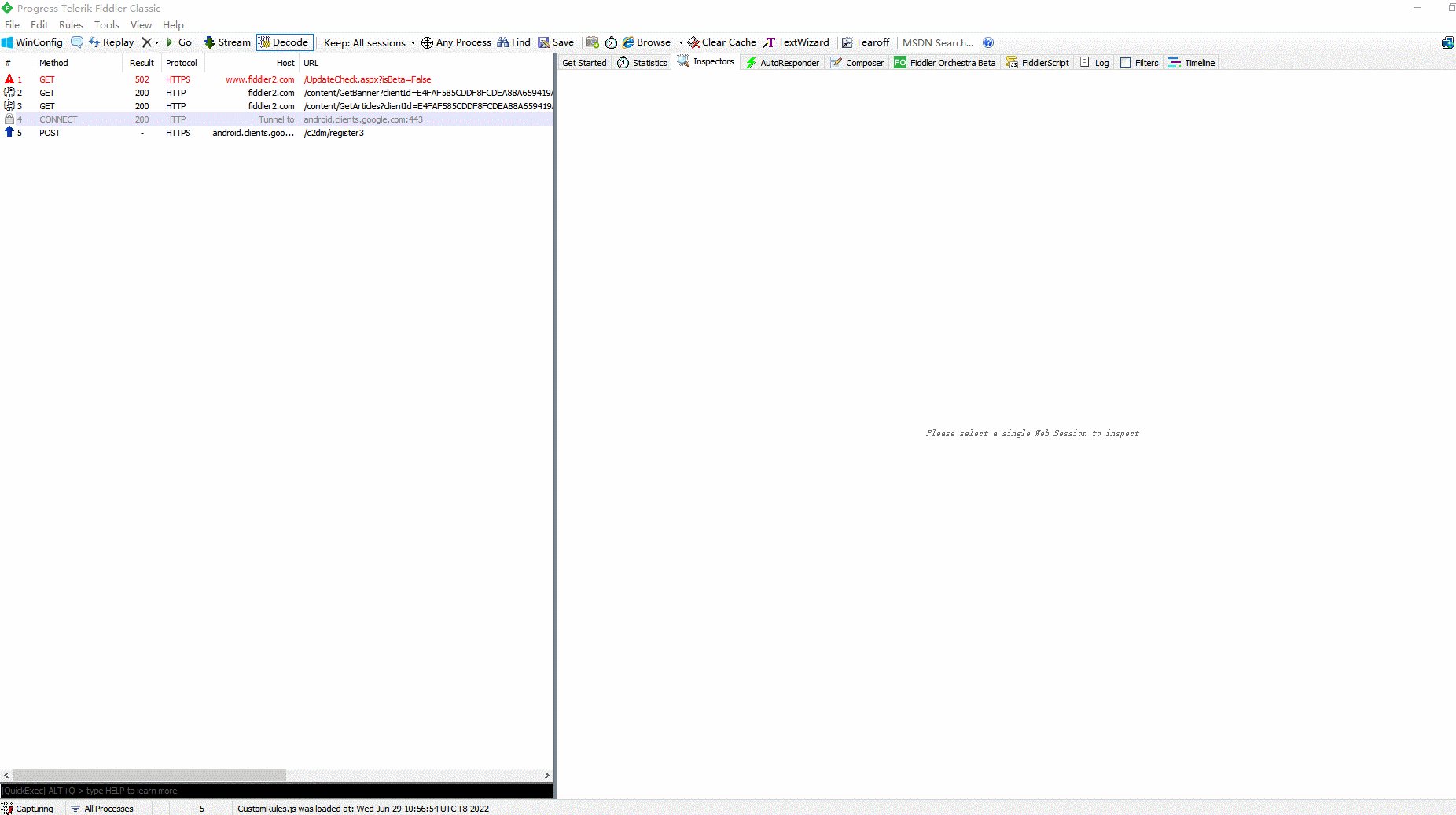 (3)Fiddler使用系统内存和页面文件(pagefile)来保存会话数据。保存大量的会话或者超大的请求和响应会导致性能急剧下降。