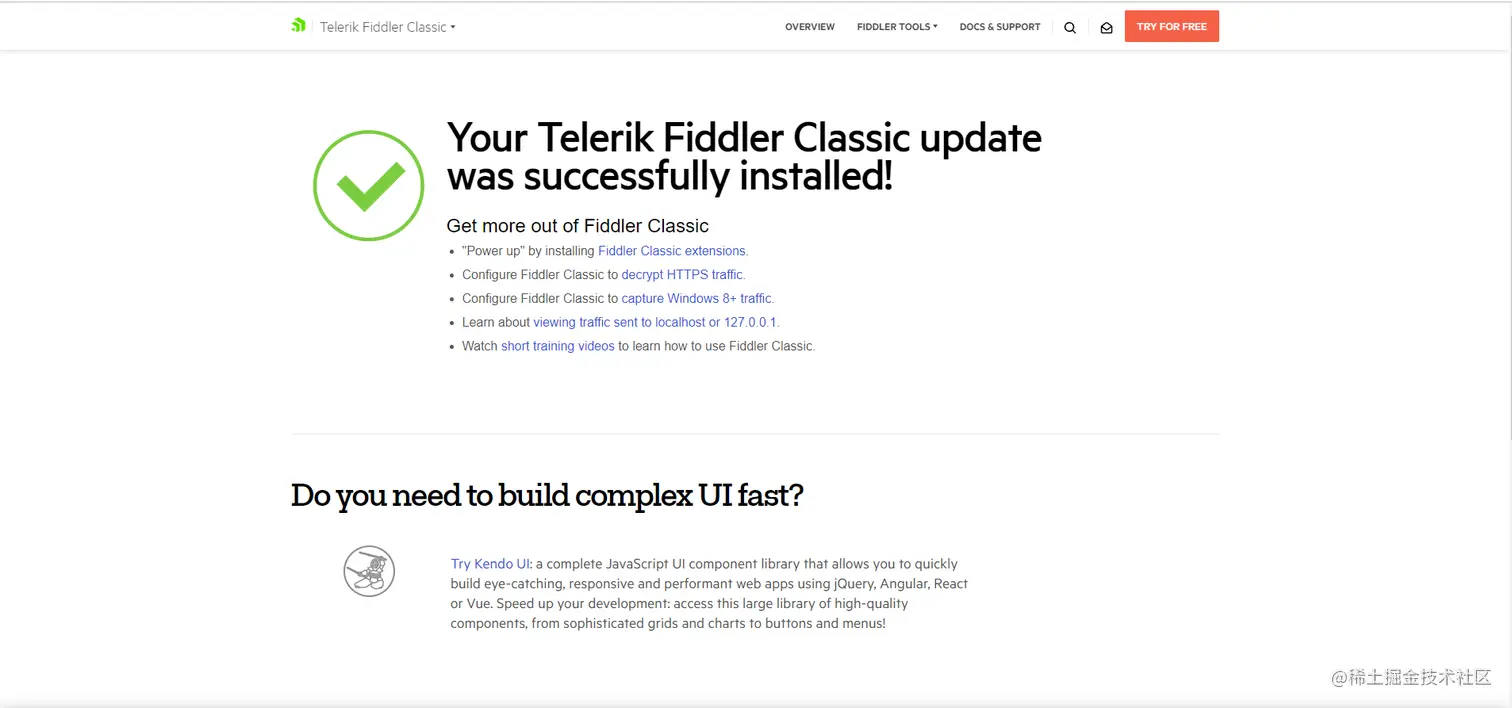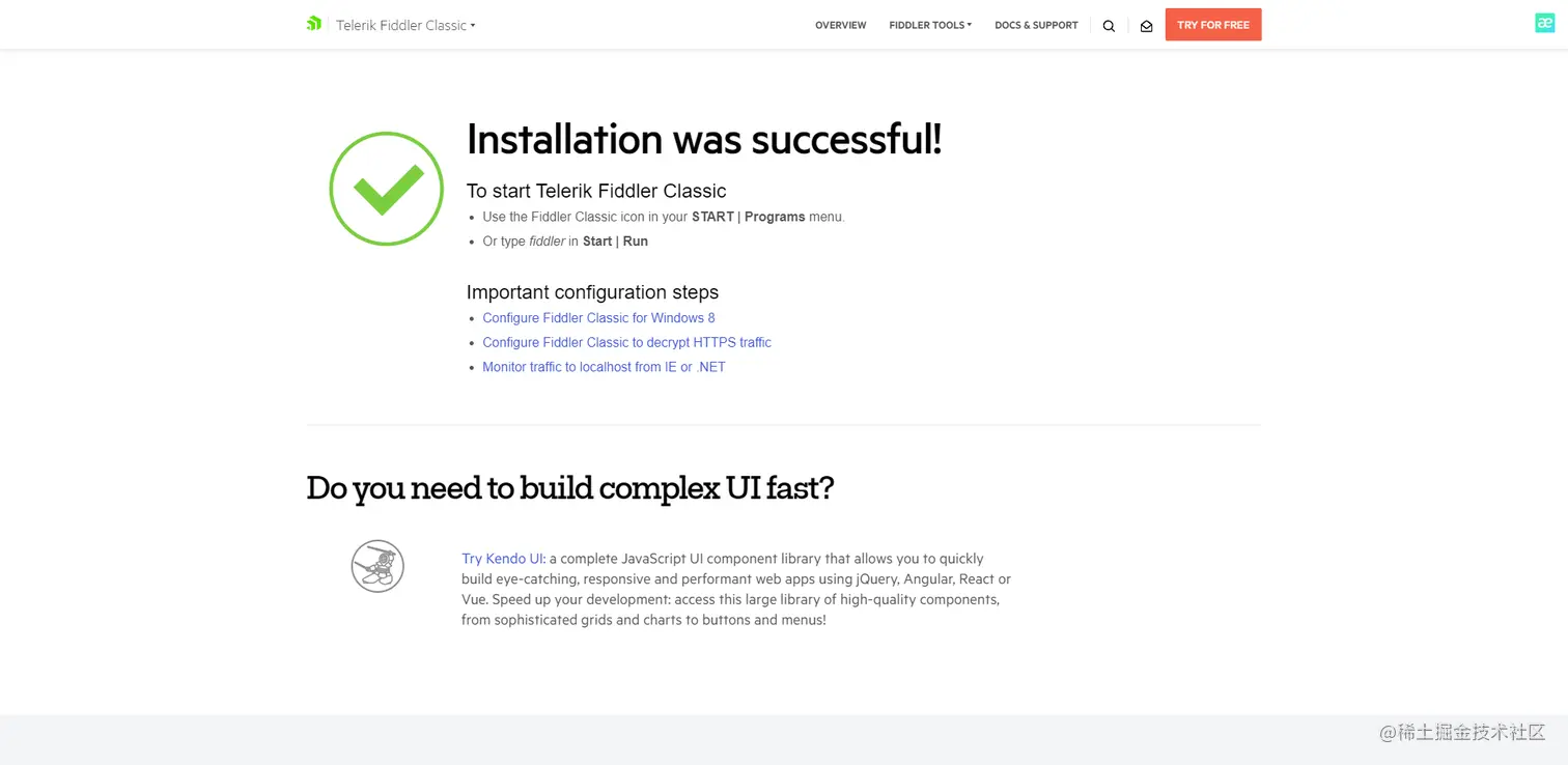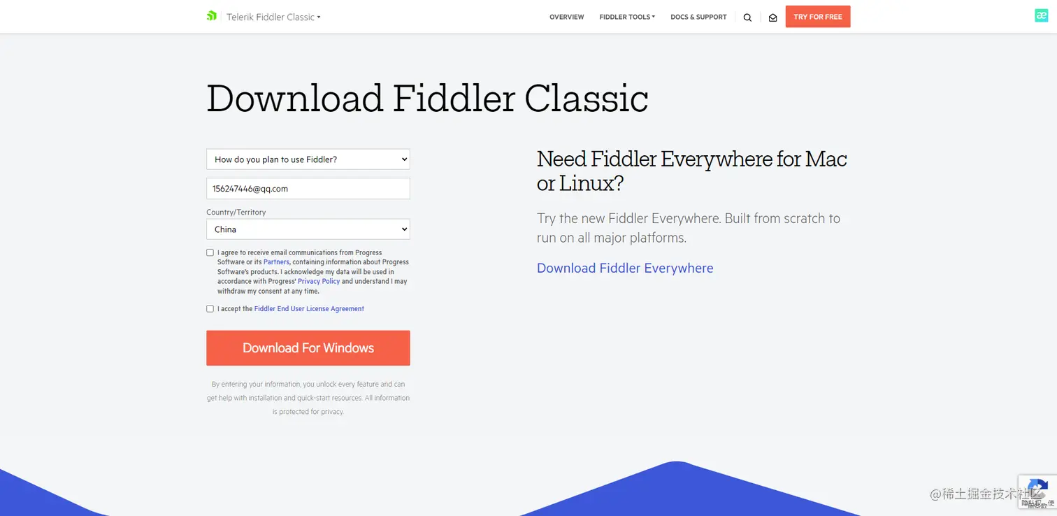 1.下载Fiddler,官方下载地址:www.telerik.com/download/fi… 点击Download for windows就可以下载了。如下图所示: