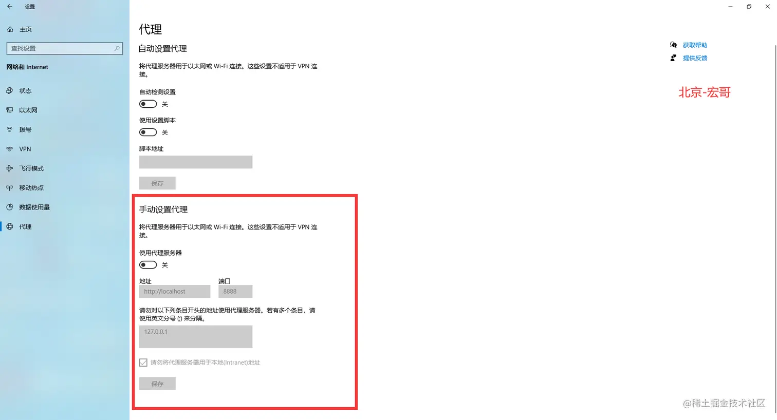 3.查看自己电脑系统是否在启动Fiddler后,开启了代理,如下图所示:
