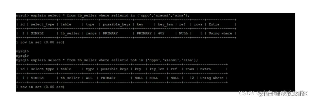 11). in 走索引, not in 索引失效。