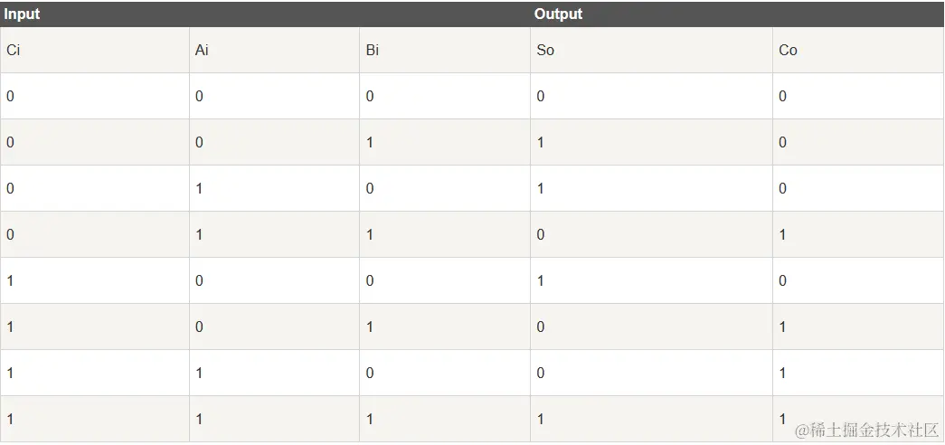 设 Ai,Bi,Ci 分别为被加数、加数和相邻低位的进位数,So, Co 分别为本位和与向相邻高位的进位数。