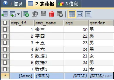Emp emp1 = new Emp(null,"数据1",21,"女");