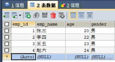 Emp emp2 = new Emp(null,"数据2",24,"男");