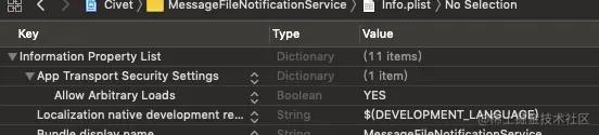 注意:如果资源路径是http的,通知不会进Notification Service,这时候需要暂时返回http协议。则需要在info.plist添加App Transport Security Settings字典,在其中添加Allow Arbitrary Loads bool类型为YES