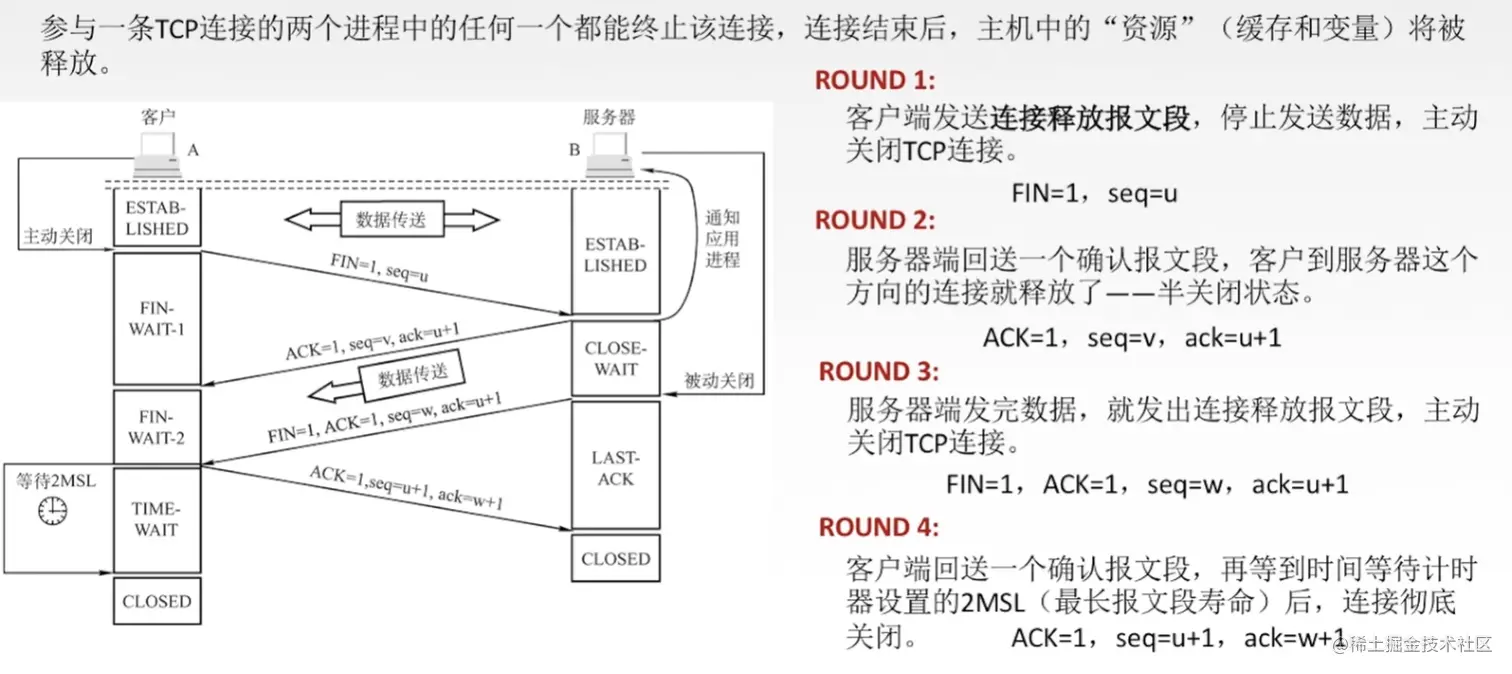 TCP连接释放的过程通常称为四次握手