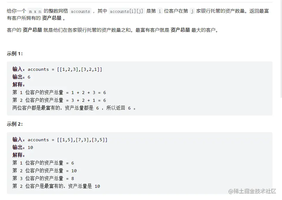 1672. 最富有客户的资产总量