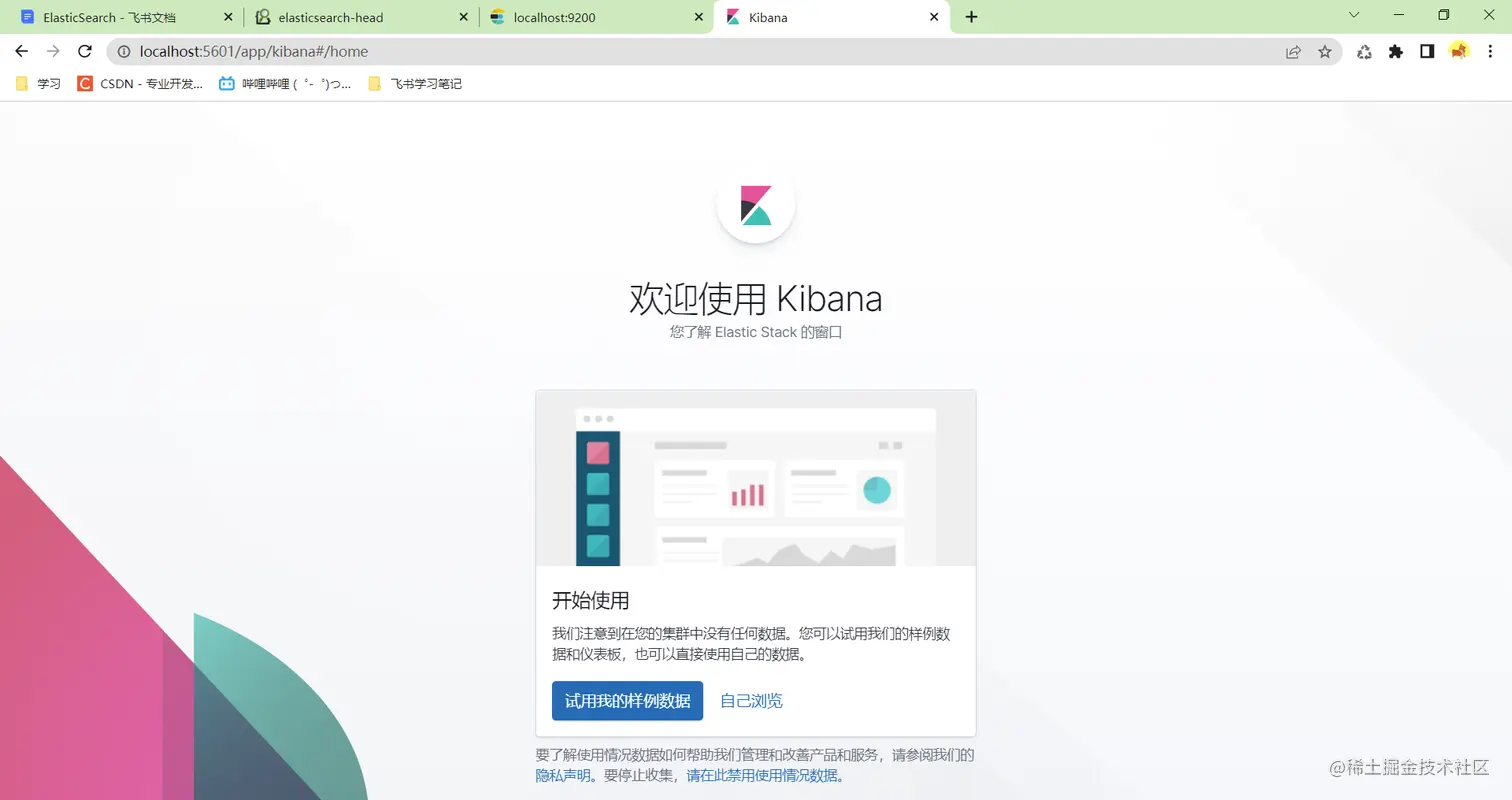 访问localhost:5601,进入Kibana的主页