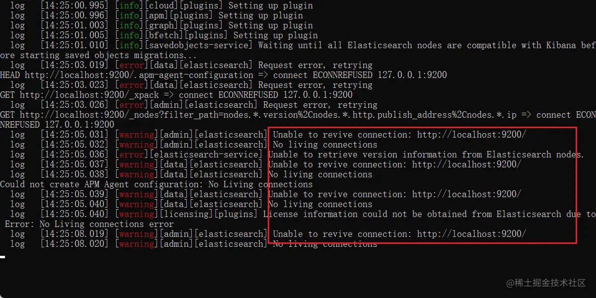 如果没有启动ES服务就启动Kibana服务,就会一直出现没有ES连接