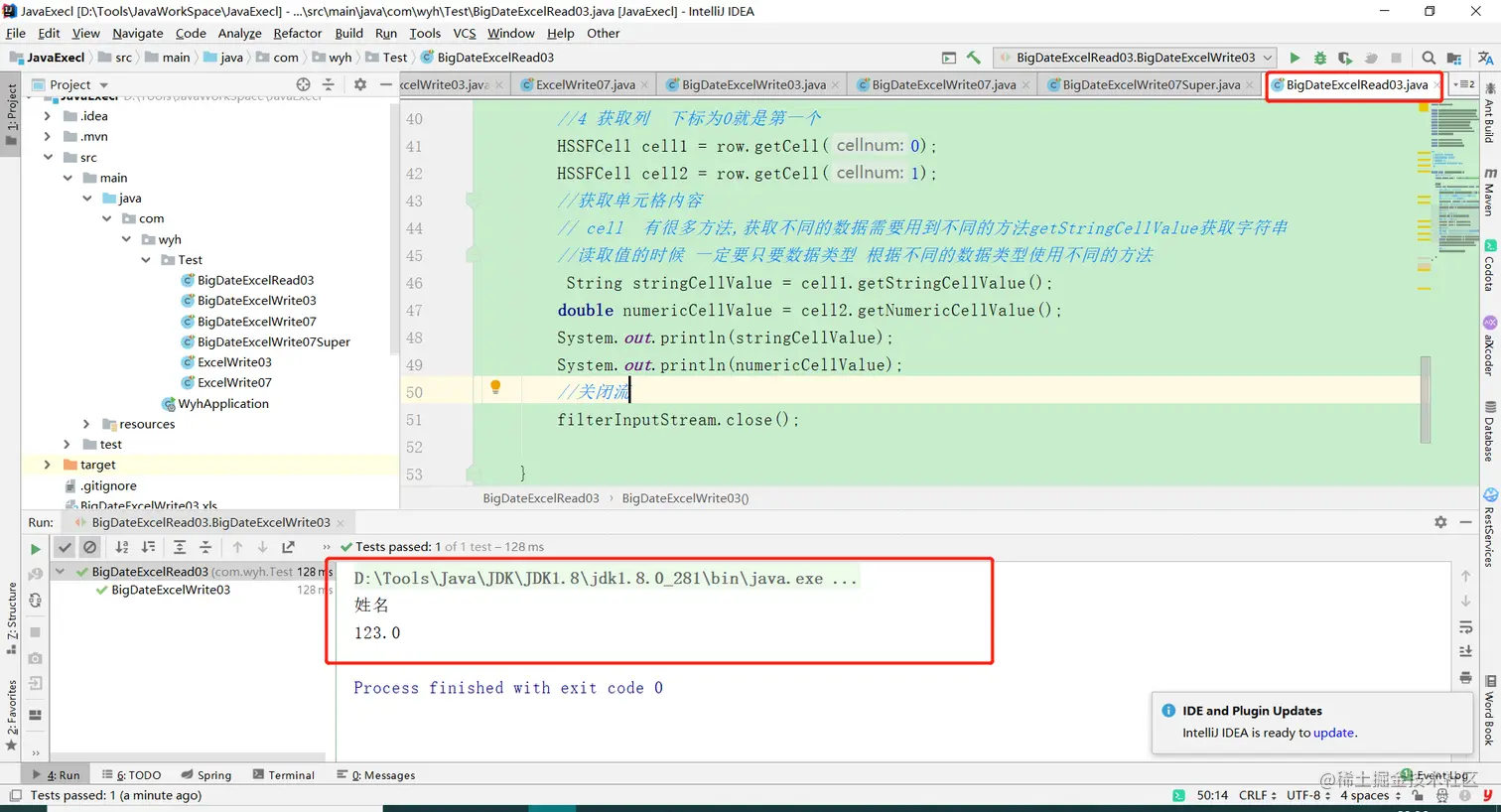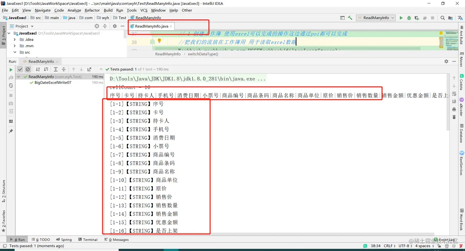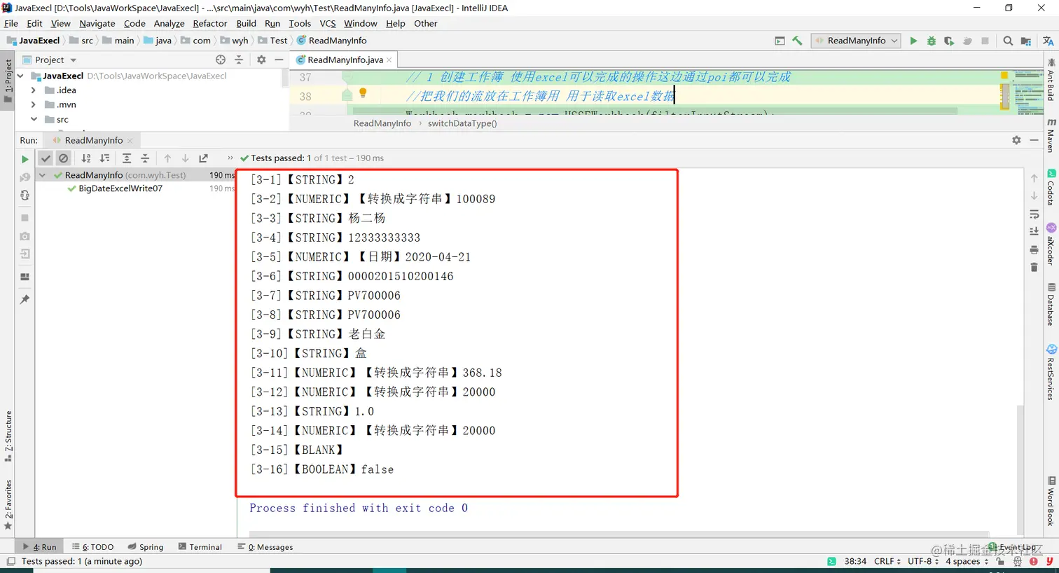 // cell 有很多方法,获取不同的数据需要用到不同的方法getStringCellValue获取字符串