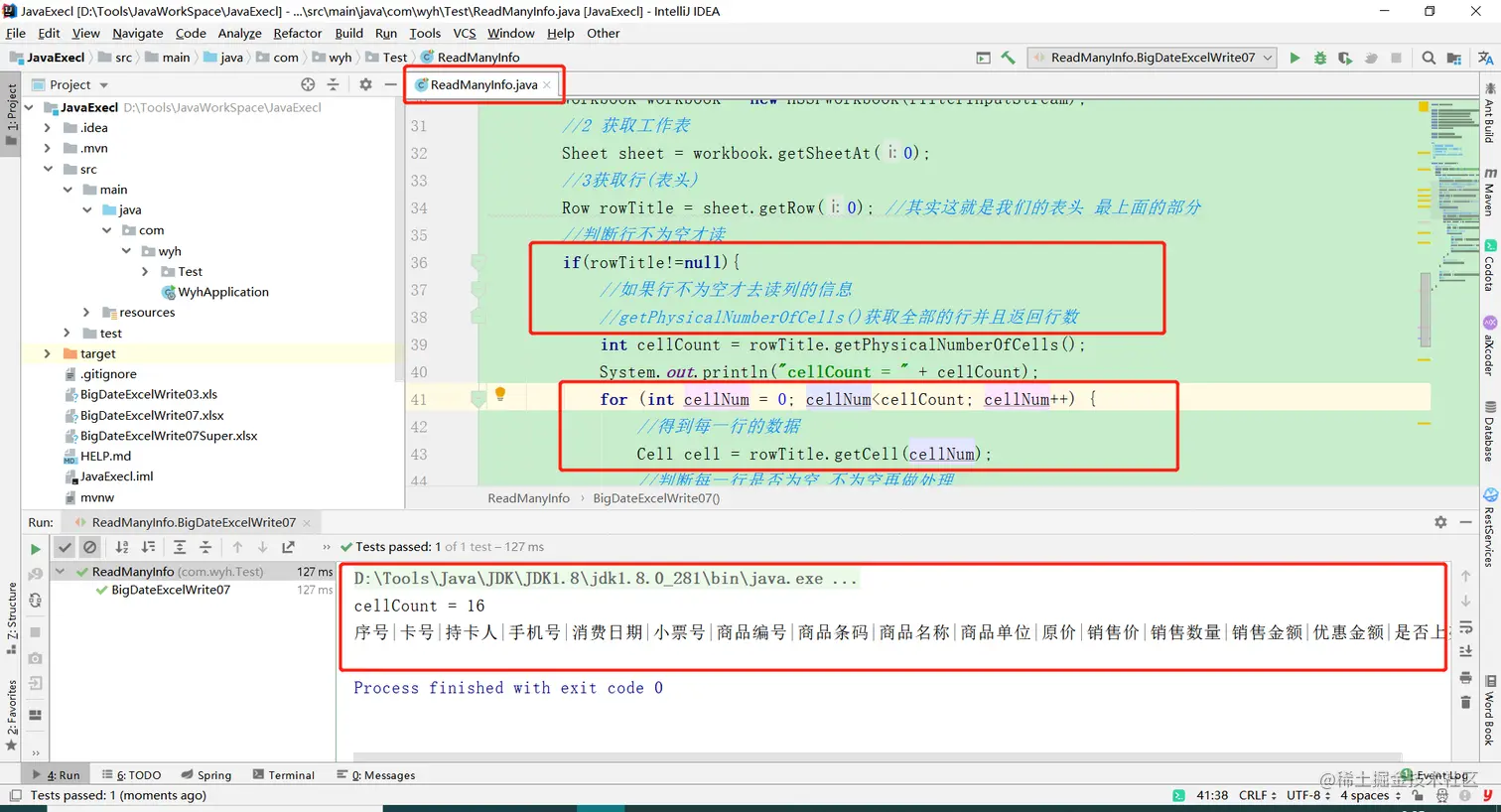 //读取行中的列 getPhysicalNumberOfCells获取全部的列