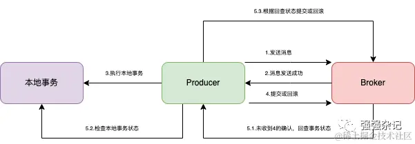 本地事务执行成功,则提交该事务消息,失败则回滚消息。