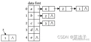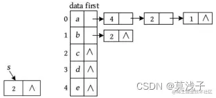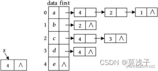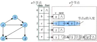 例如,一个有向图及其邻接表如下图所示。