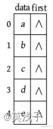 (2)输入节点信息a b c d e 并将其存入节点表,存储结果如下图所示。