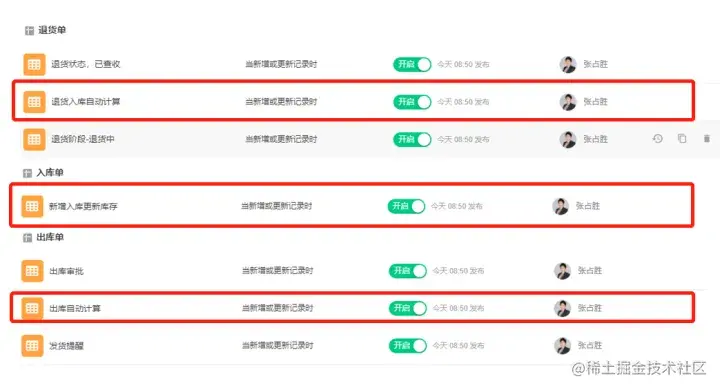 采购自动入库、退货自动入库和出库自动计算实现路径一样,审批、通知等工作流在销售管理里面也已经涉及到,就不再赘述。