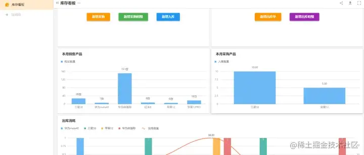 库存看板给采购和库管两个部门使用,可以通过快捷键创建采购单、采购明细等,也可以快速查看哪些产品是热销品、哪些产品库存过高、哪些产品采购频率较高、库存变动是什么样的等等,所有库存采购变化一眼即明。