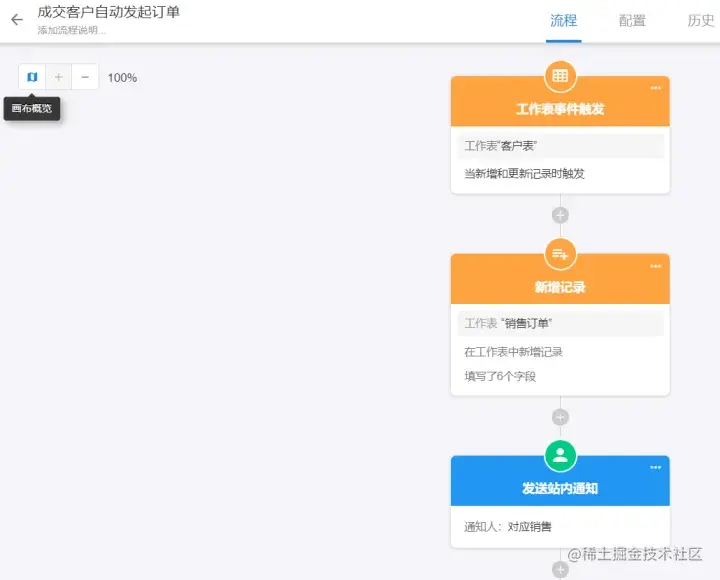 通过工作流设置实现审批通知,下次跟进时间到点通知,成交客户自动生成订单等功能。