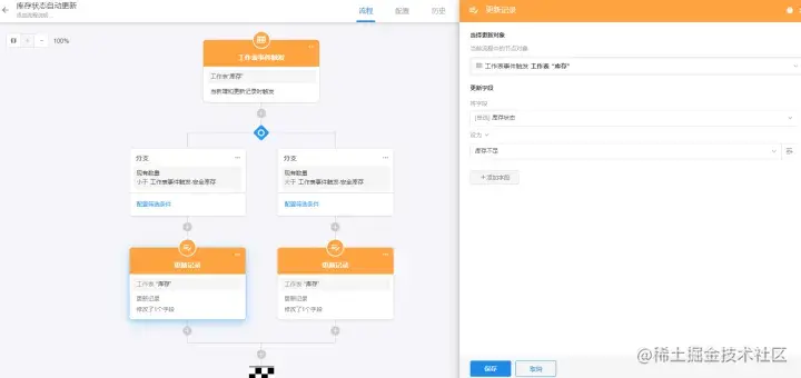 采购审批通过,工作流自动更新库存,并通知财务向供应商付款。其中采购自动入库,付款通知等工作流等都已经做了展示,不再赘述。