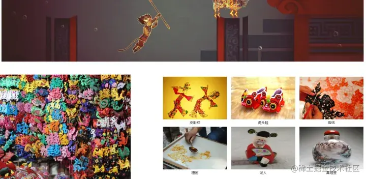 风俗页的实现参考了民族页和之前的一些设计,另外在底部图片上增加了缩放动画。