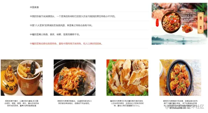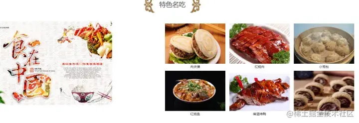 美食页综合了前面页面典型的图文布局方式,具体设计效果如下: