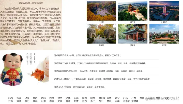 地域页的实现方式和历史页很类似(只做了江苏的详情页,其他城市未设计),具体的设计效果如下: