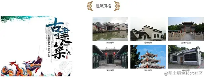 建筑页的实现方式和民俗页一样,具体设计效果如下: