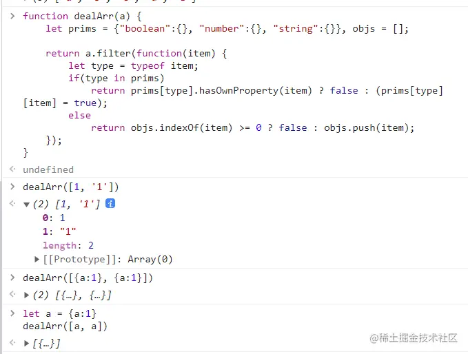 这个方法有点笨,通过哈希表查找来fiter,大伙可以想一想缺陷是什么。(提示:对象,key。 测试用例: [1, '1']。)