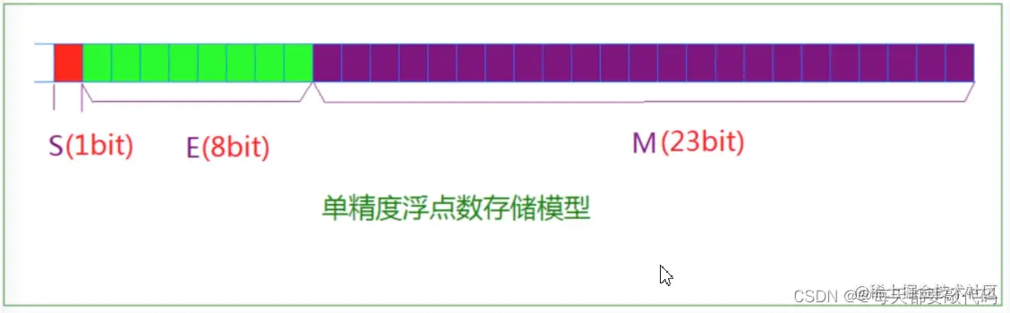 对于32位的浮点数:最高的1位是符号位s,接着的8位是指数E,剩下的23位位有效数字M