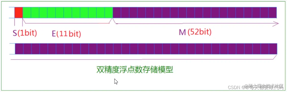 对于64位的浮点数:最高的1位是符号位s,接着的11位是指数E,剩下的52位位有效数字M