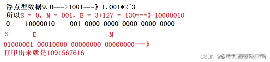 (3)3的值呢?本来是浮点型数据float,我们以整型%d的方式打印; 我们还是先看浮点数9.0在内存中的存储方式: