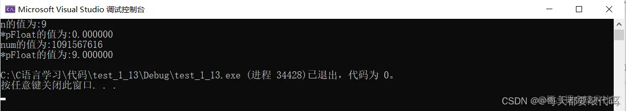(4)我们以浮点数的形式存储,浮点数的形式打印,结果就还是9:9.000000
