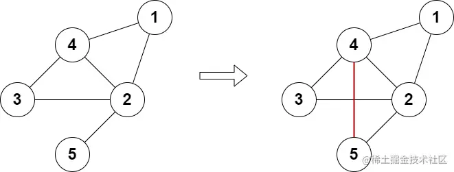 输入: n = 5, edges = [[1,2],[2,3],[3,4],[4,2],[1,4],[2,5]]
