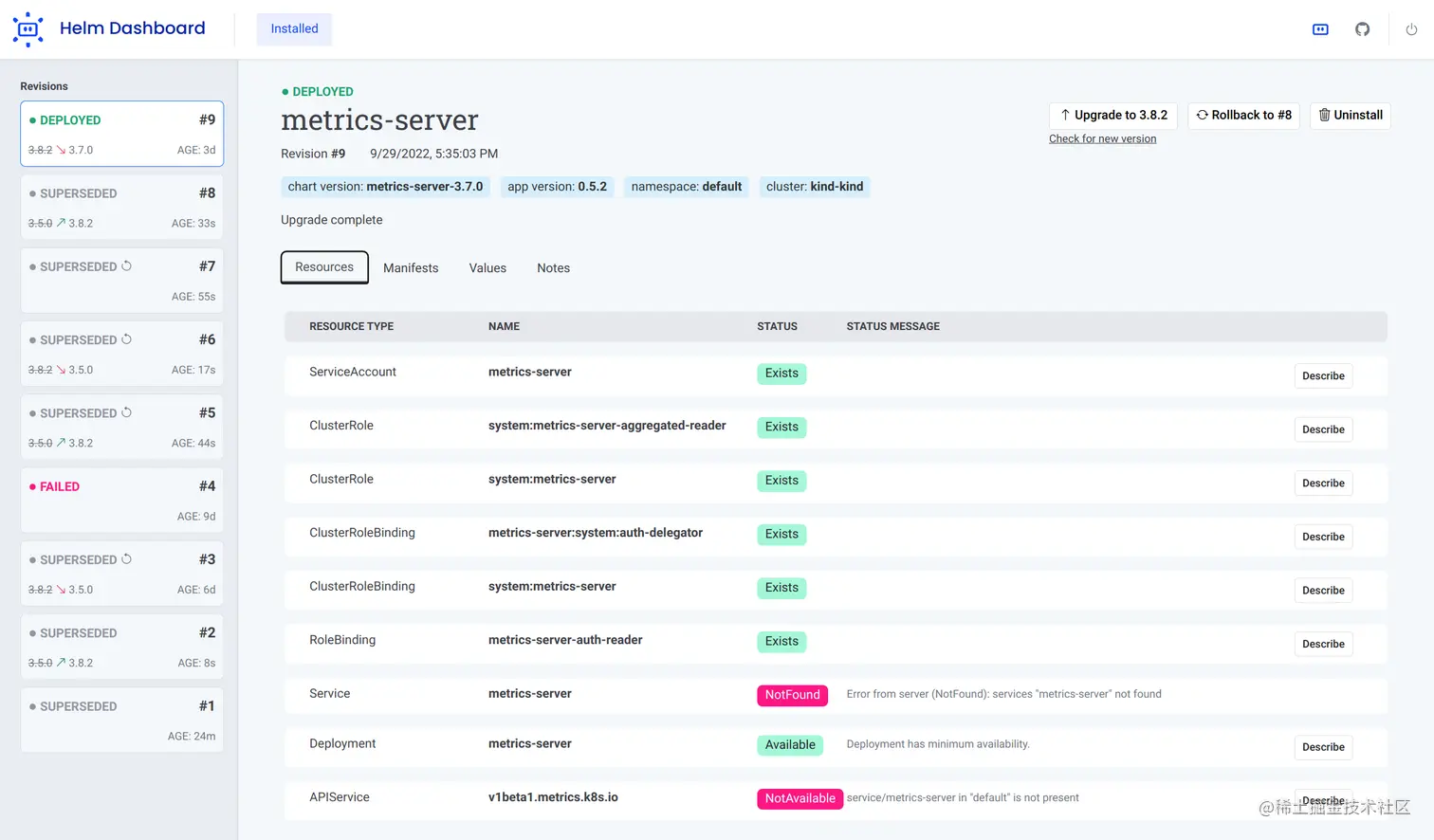 New helm-dashboard 提供了 UI 驱动的方式来查看已安装的 Helm 图表,查看它们的历史修订版本以及 K8s 资源。你可以简单地通过 Web 界面就能回滚到指定版本。此外,它还集成了主流的问题扫描工具,支持快速在多个集群间切换。