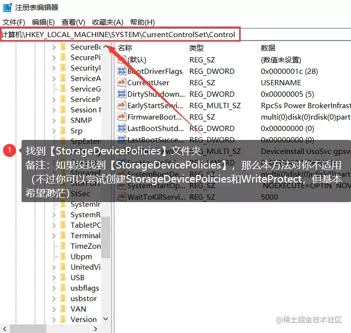 步骤5: 完成操作后,保存注册表。再重启电脑,检查写保护是否去掉了。
