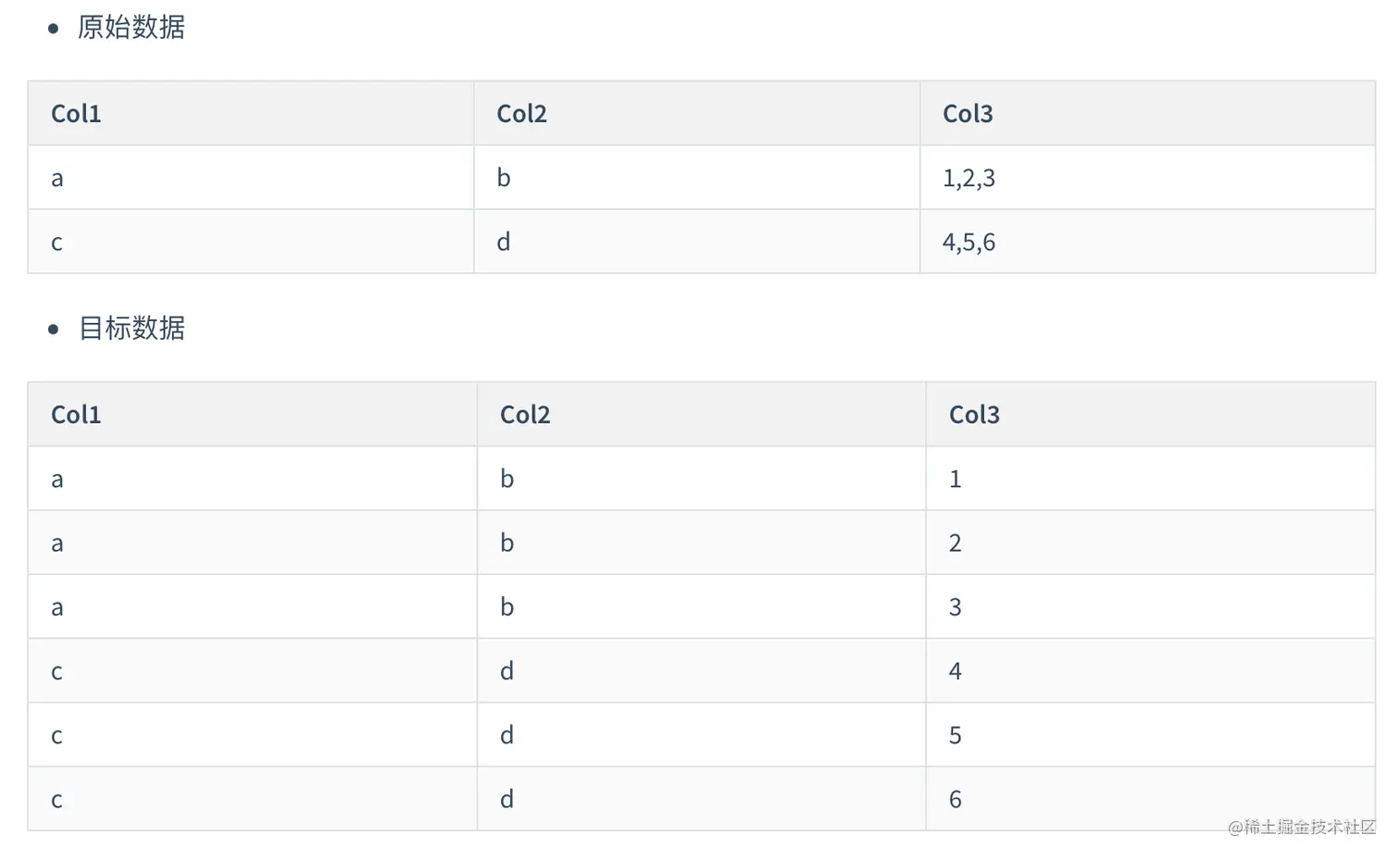 explode函数接收map或者array类型的数据作为参数,然后把参数中的每个元素炸开变成一行数据。一个元素一行。这样的效果正好满足于输入一行输出多行。