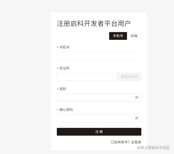 登录QuSasS网站:developer.queco.cn/ 点击右上角注册按钮,完成注册