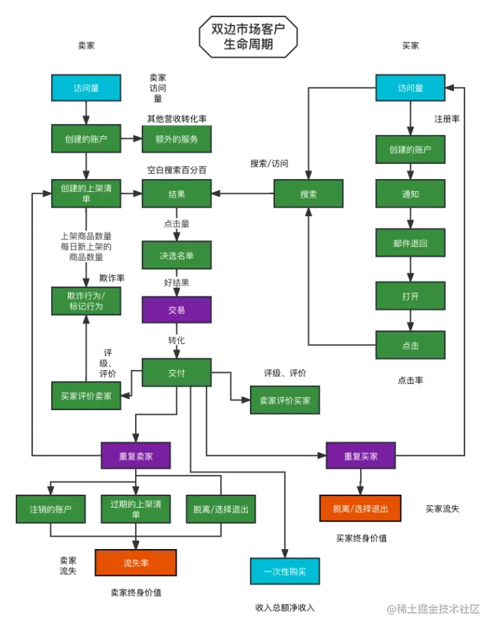 双边市场特色就在双边上,所以既要关注卖方的人数增长情况,同时也要关注买方的增长人数。