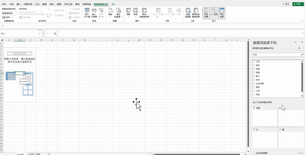 人事管理系统中,高频的需求点就是对人员的分类汇总。例如,我们需要对公司所有员工按照性别进行分类,就可以基于人员信息生成透视表,具体操作如下: