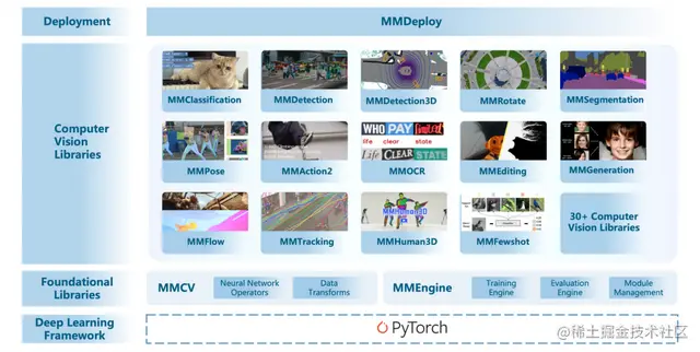 OpenMMLab(github.com/open-mmlab)… 2018 年,是深度学习时代计算机视觉领域最全面、最具影响力的开源算法体系。旨在为学术和产业界提供一个可跨方向、结构精良、跨站性强、易复现的统一算法工具库。在 2021 年上海人工智能大会上,发布了新一代 OpenMMLab,其升级后涵盖了更广泛的算法领域和应用场景,实现了从训练到部署的全链条价值。