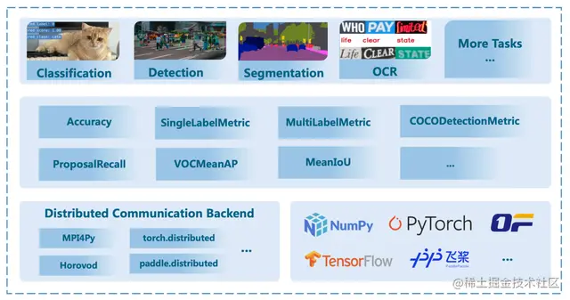 MMEval(github.com/open-mmlab/… 是一个跨框架的机器学习算法评测库,提供高效准确的分布式评测以及多种机器学习框架后端支持,具有以下特点: