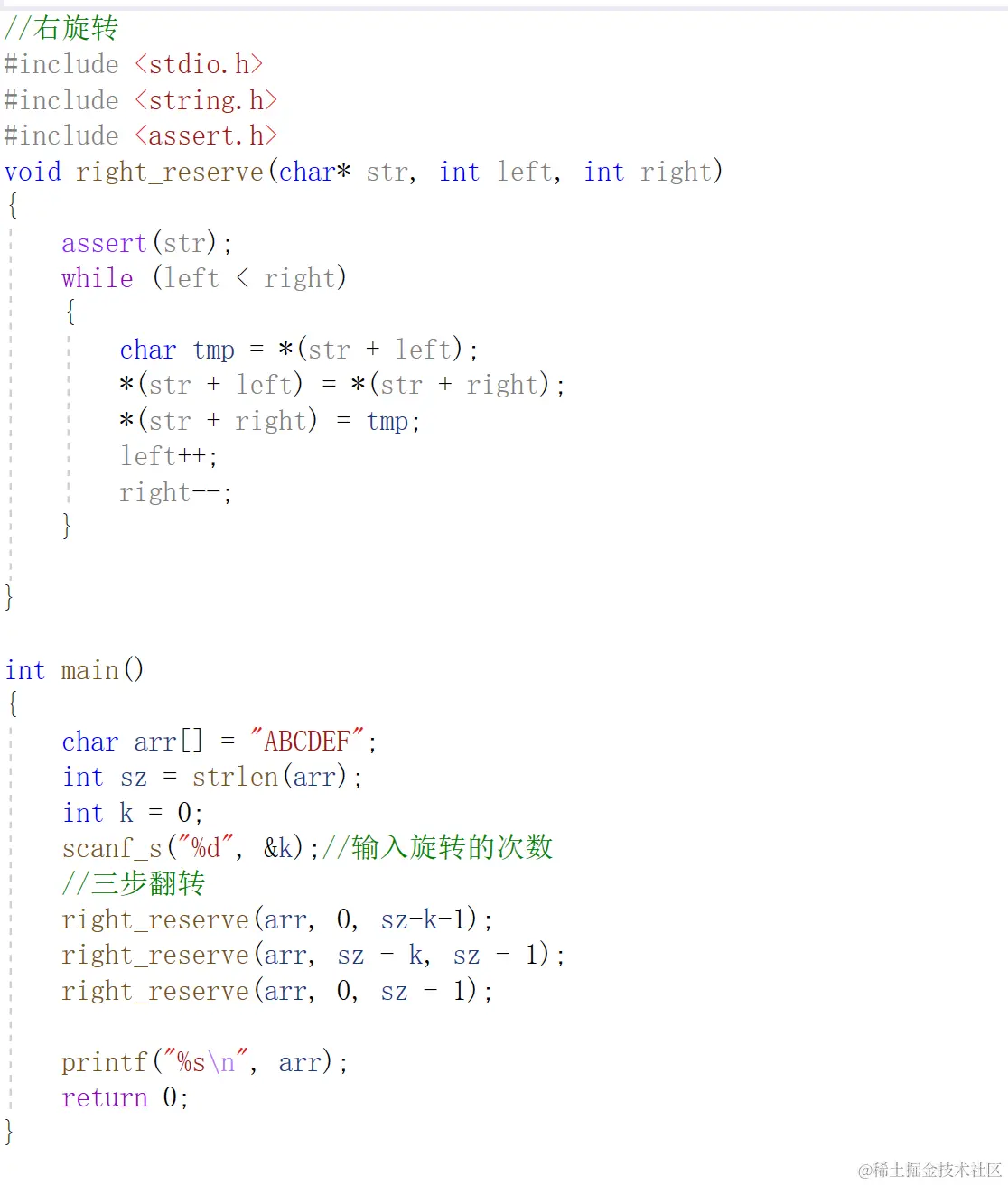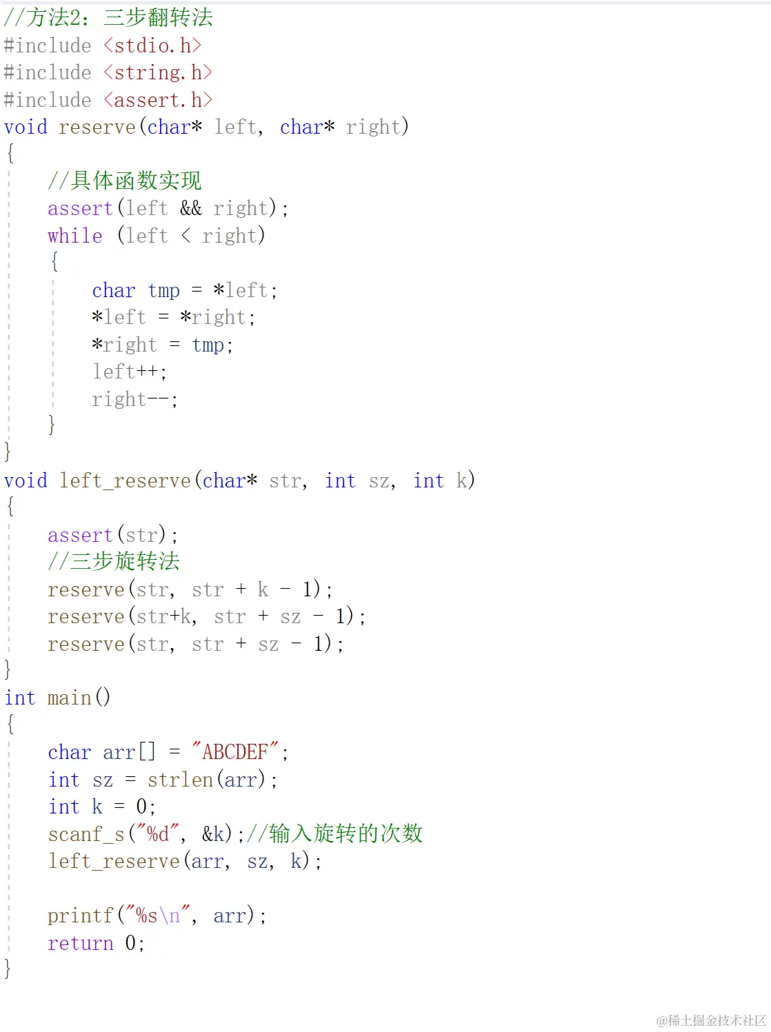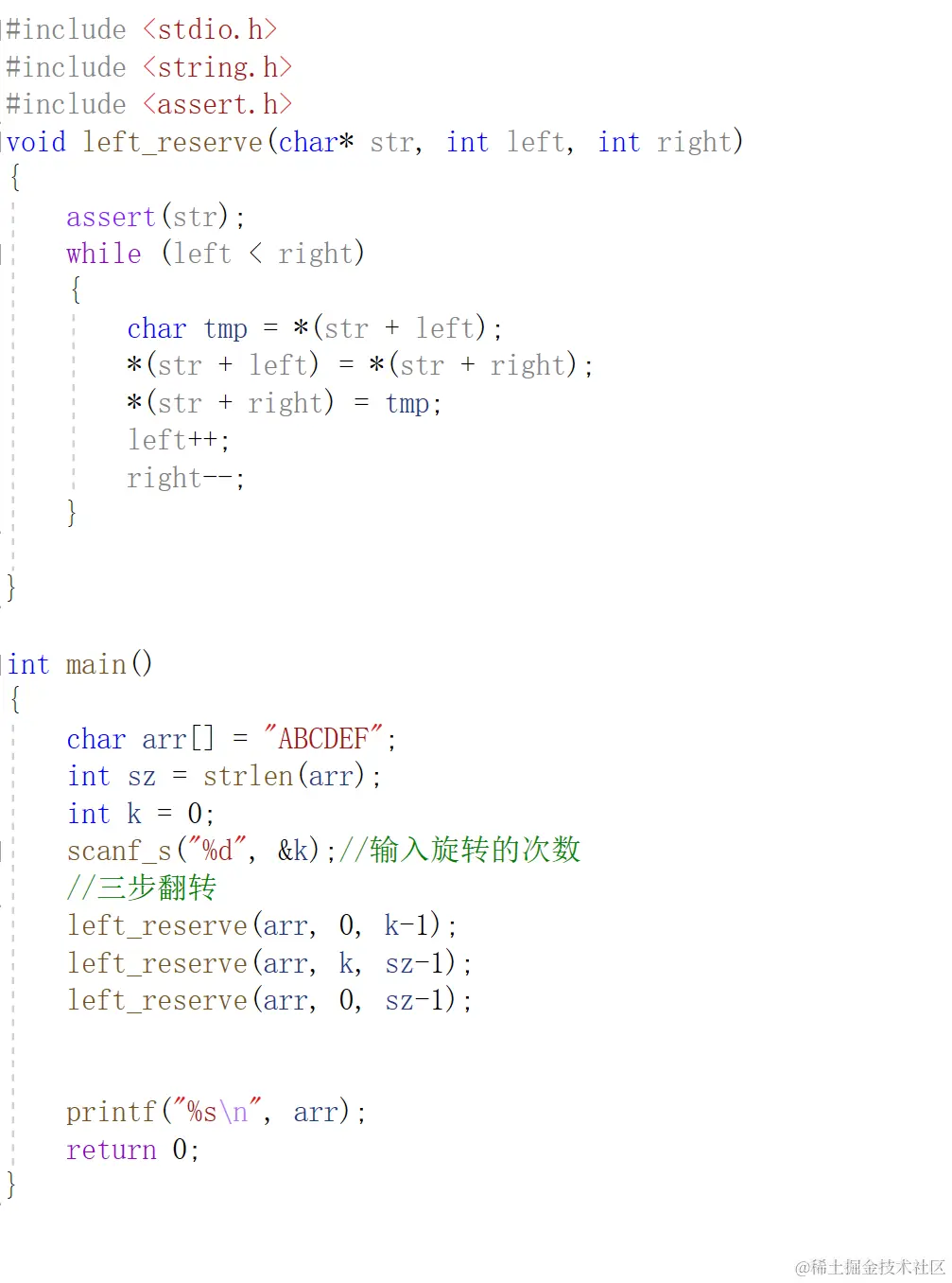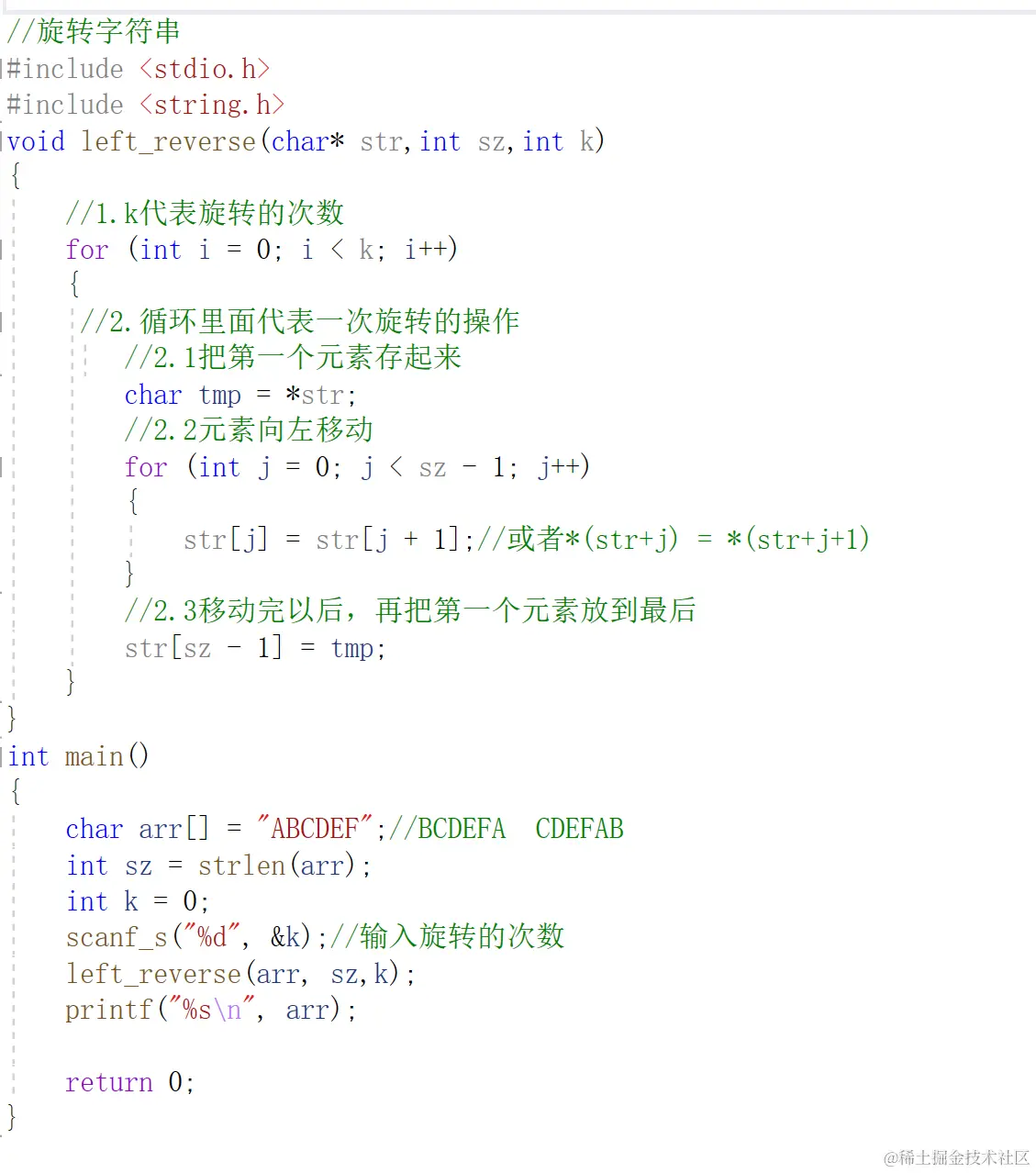 所谓旋转字符串就是:实现一个函数,可以左旋转字符串中的k个字符;例如:ABCD左旋转一个字符BCDA;ABCD左旋转两个字符CDAB。这很类似于我们以前讲过的旋转数组,感兴趣的小伙伴可以去看一下:《旋转数组》