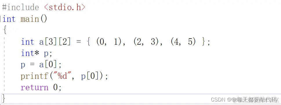 这道题目,我们乍一看觉得很简单结果是0,却忽略了逗号表达式;实际上数组里存储的是{1,3,5};所以最终p[0]的值就为1。