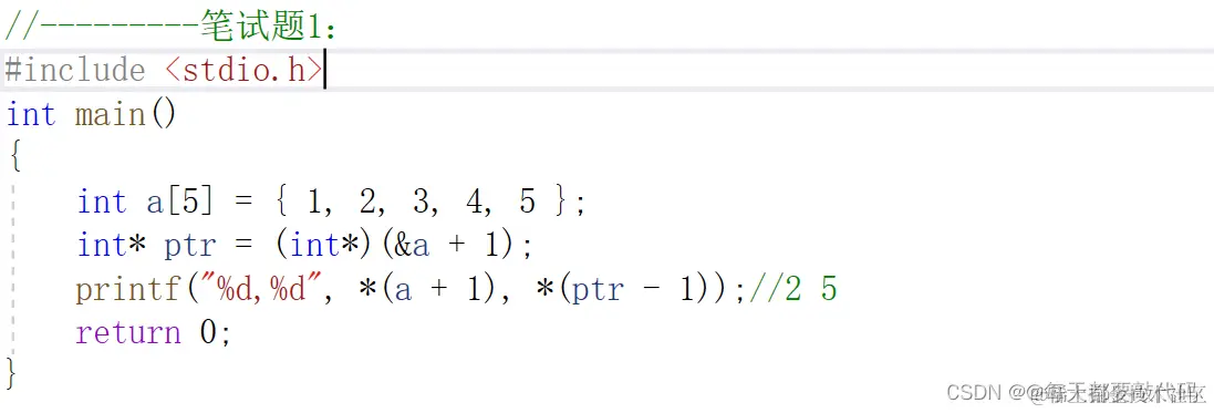 7、strlen(&arr[0] + 1) ,&arr[0]代表第一个元素的地址;&arr[0] + 1表示第二个元素的的地址,从第二个元素开始;所以最终结果就是6-1 = 5;