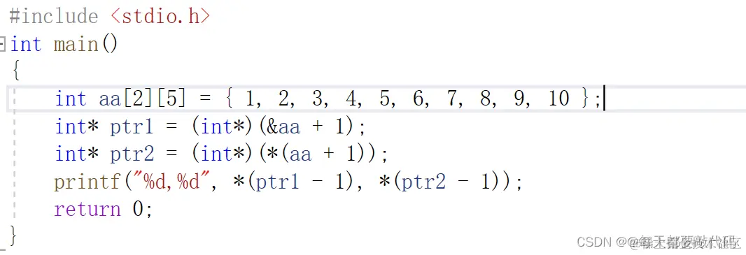 2、*(aa+1)等价于aa[1]相当于第二行的数组名