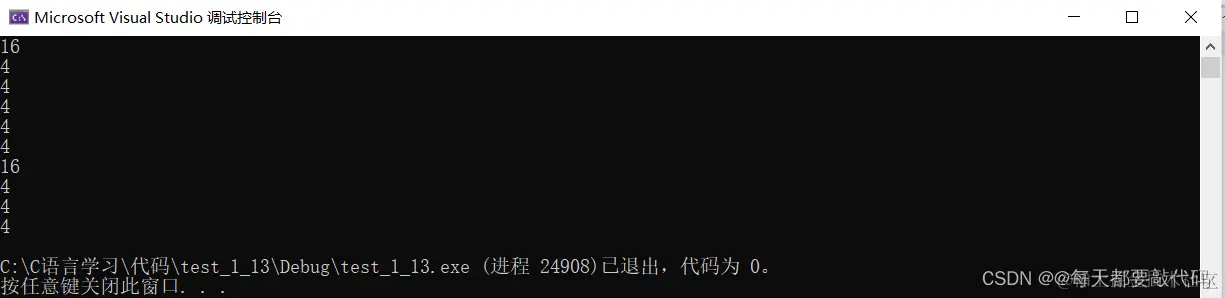 7、sizeof(*(a+1)) ,就是步骤6的解应用,拿到的是第二行的所有元素;也就是4*4 = 16;