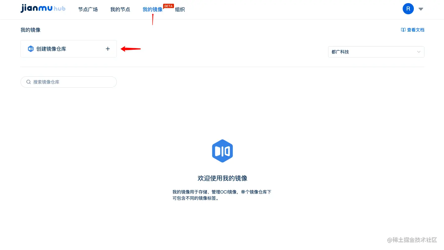 1、点击导航上的【我的镜像】-点击创建镜像仓库