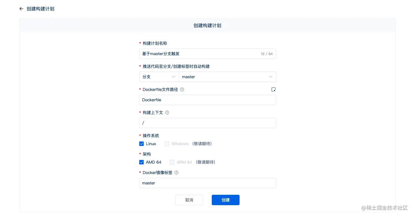 5、定义镜像自动构建的规则。建议将Dockerfile存放在所选代码仓库的根目录下,省去填写文件路径的这一步~