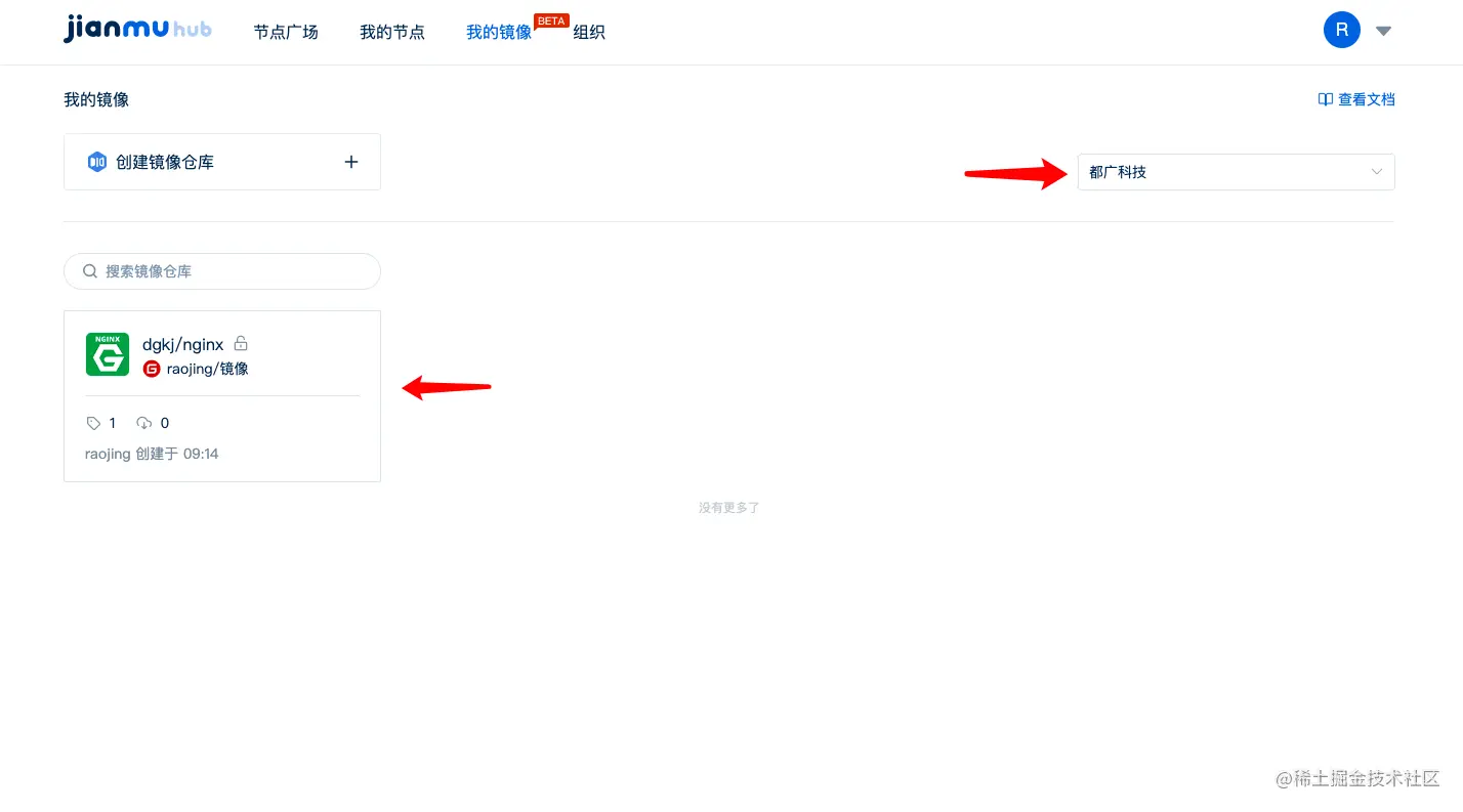 8、至此,组织下的镜像仓库创建完成✅!该组织下的其他成员也能查看此镜像仓库并拉取镜像~